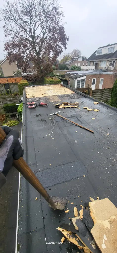 Dakbedekking verwijderd en voorzien van isolatie en 2-laags bitumen