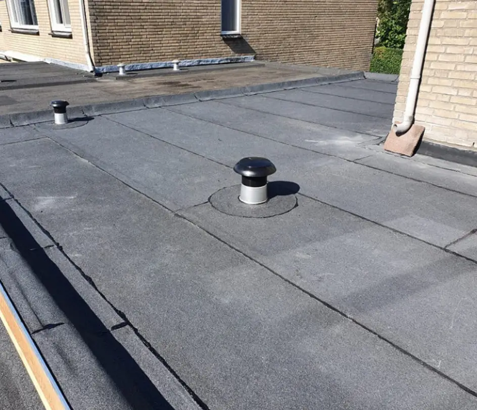 Bitumen dak keurig waterdicht gemaakt na een flinke lekkage