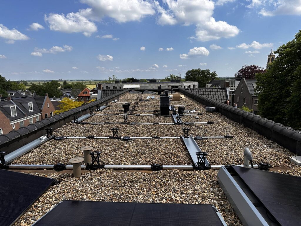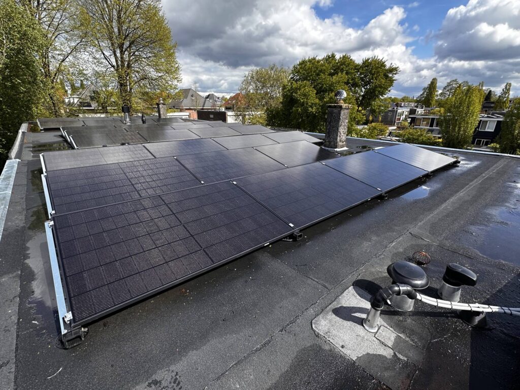 11 zonnepanelen op een plat dak
